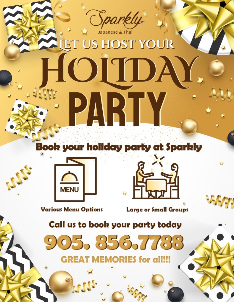 To inquire about hosting your Christmas Party or special occasion at Sparkly, please call us (905) 856-7788. We are happy to discuss the details of your party, provide you with a quote and confirm your reservation.